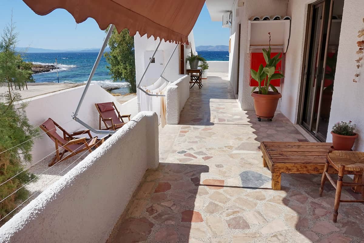 The Beachhouse Villa is a separate building, 80 metres away from the Apartments and can sleep up to 4 adults in 2 bedrooms with 2 double beds.. The Villa has a super sea view rooftop terrace with dining are. Guests of the Villa can also make use of our beach facilities. Wake up to a stunning sea view over the Saronic Gulf and fall asleep to the sound of waves.