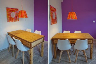 Each apartment's kitchen wall reflects a color of the chakras and is named after it.