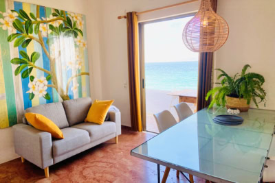 The unique seaside location of The Beachhouse Apartments & The Beachhouse Villa makes it a beloved retreat for couples, friends, solo travelers, and small groups seeking a peaceful escape or a transformative retreat. The sea right in front is like a shallow swimming pool, with crystal-clear water gently protected by a natural stone formation—perfect for swimming and basking in nature’s serenity.
