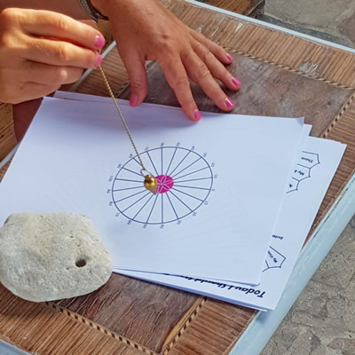 Sessions begin with the client’s reason for coming, but from there the pendulum leads. With the support of dowsing charts, areas of unconscious influence are uncovered — such as past experiences that still shape choices, behaviors that drain energy, or the ages when certain traumas first appeared.