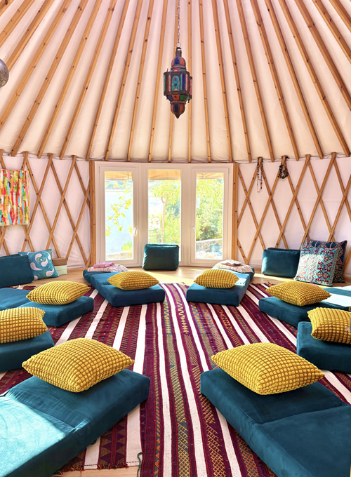 “Practicing yoga here is unlike anywhere else. The round shape and energy of the yurt make every movement flow naturally.”